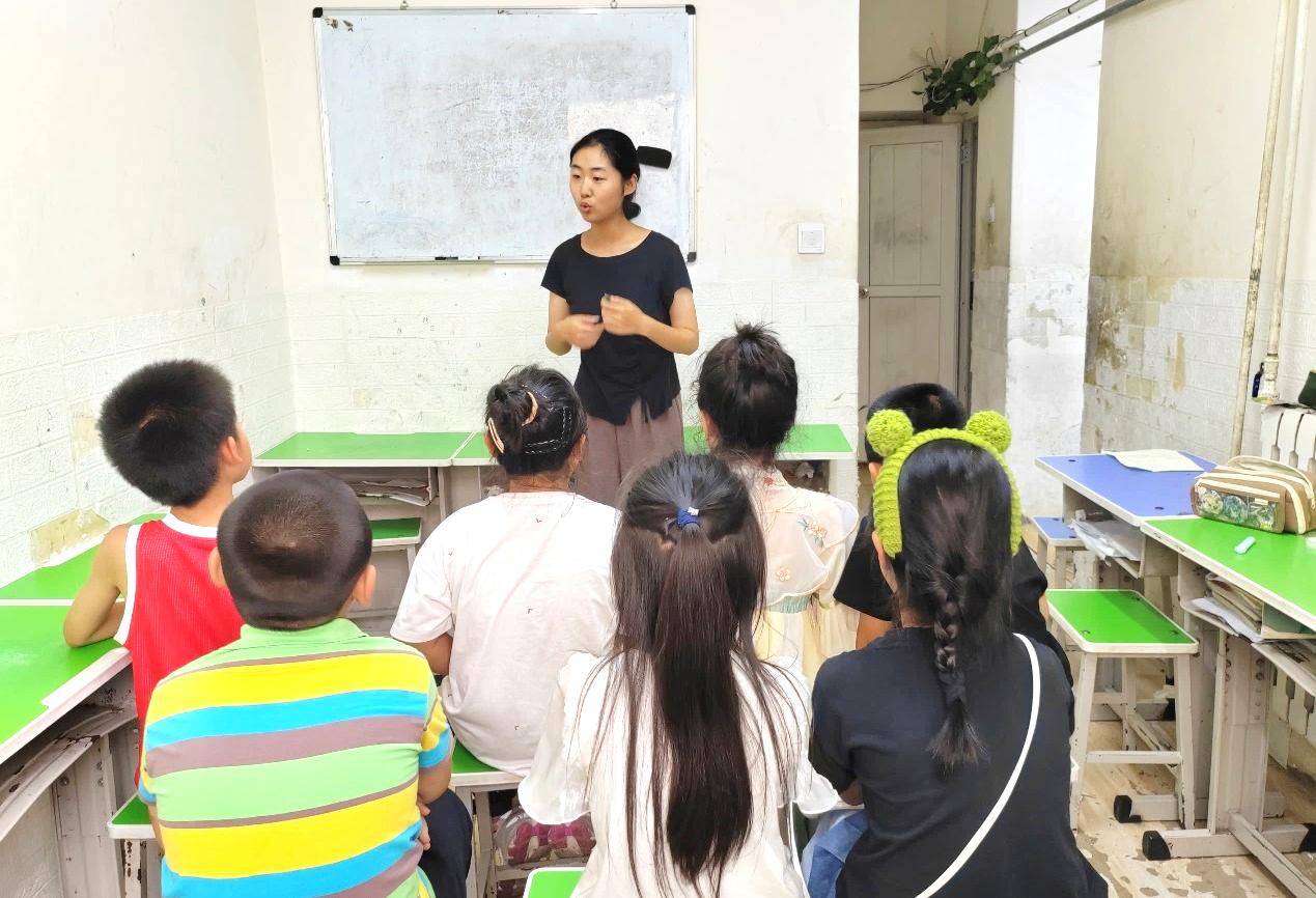 進入課程的第一部分,實踐隊員為孩子們進行學習習慣的引導,目標如同燈塔,指引著前行的方向。實踐隊員與孩子共同制定具體、可實現的學習目標,這些目標既有挑戰性,又符合孩子的實際能力,讓孩子在達成目標的過程中體驗成就感,從而形成積極的學習態度。其次,自主學習是終身學習能力的基礎。實踐隊員鼓勵孩子們獨立思考,根據周圍的青山綠水提出一些小小的問題,讓孩子們主動去尋求答案,而不僅僅是依賴于被動的接受他人傳輸的知識。此外,時間管理是學習習慣培養的關鍵。農村的孩子往往因為貪玩,而容易忽視學習任務,為此,實踐隊員帶著孩子們制定合理的學習計劃,將暑假學習任務分解為一個個小目標,分配到每一天,避免臨時抱佛腳。當然,計劃中也包含了休息和娛樂時間,保證孩子們有足夠的時間放松,避免孩子們的學習熱情被枯燥的學習任務消磨。最后,良好的學習姿勢是能夠好好學習的基礎。實踐隊員對孩子們的坐姿以及拿筆姿勢等進行糾正,爭取讓孩子們能夠矯正自己的姿勢。這不僅僅是為了能夠為了學習更規范,更是為了讓孩子們留住明亮的眼睛和健康的身體。