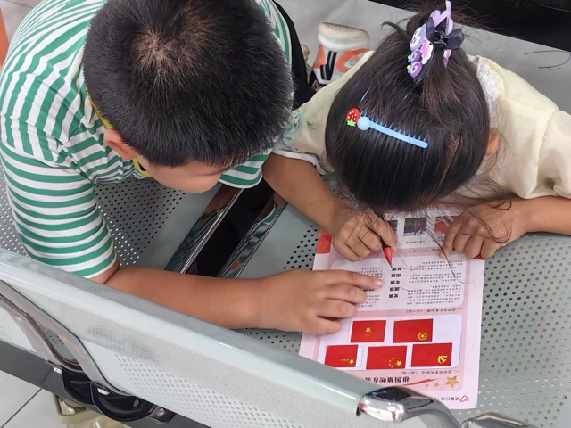(圖為孩子們通過趣味小游戲學習國旗知識)