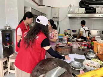 圖為志愿者服務隊在后廚服務
