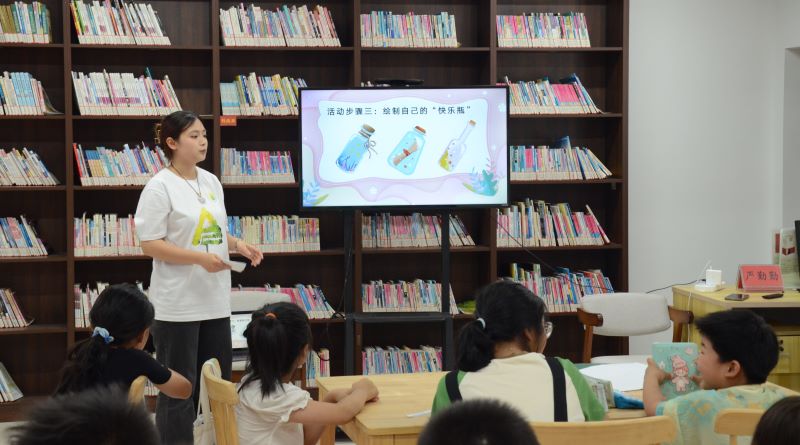 圖為志愿者在為小朋友們講解快樂瓶的活動(dòng) 方思遠(yuǎn) 攝