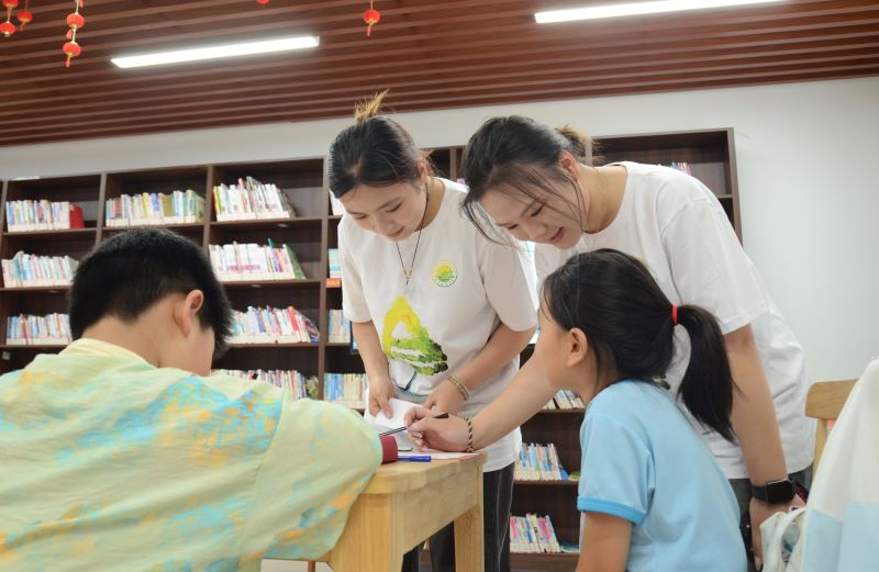 圖為志愿者正在幫助小朋友完成課程任務(wù) 方思遠(yuǎn) 攝