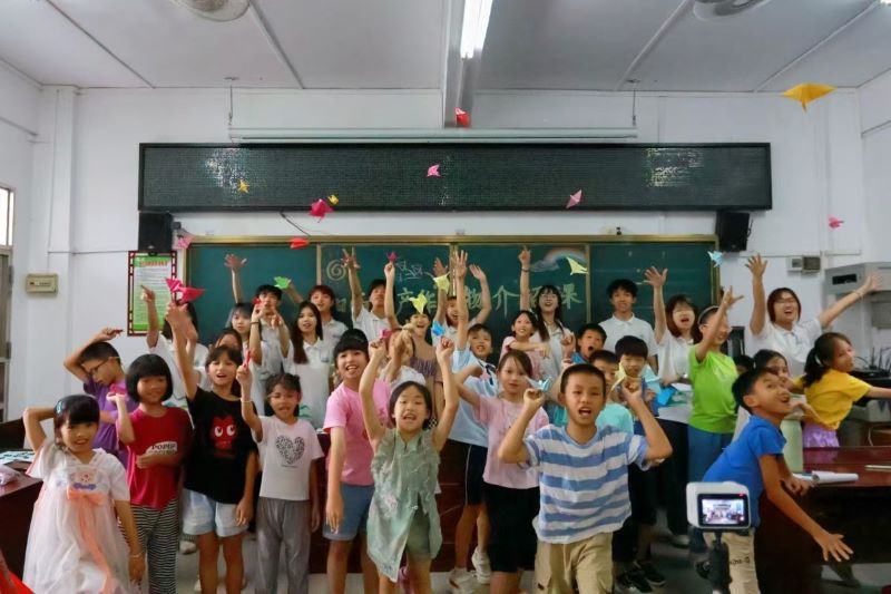 圖為實踐隊和儒洞鎮中心小學學生共同進行“萬紙千鳶”夢想起航活動 實踐隊隊員張金普攝