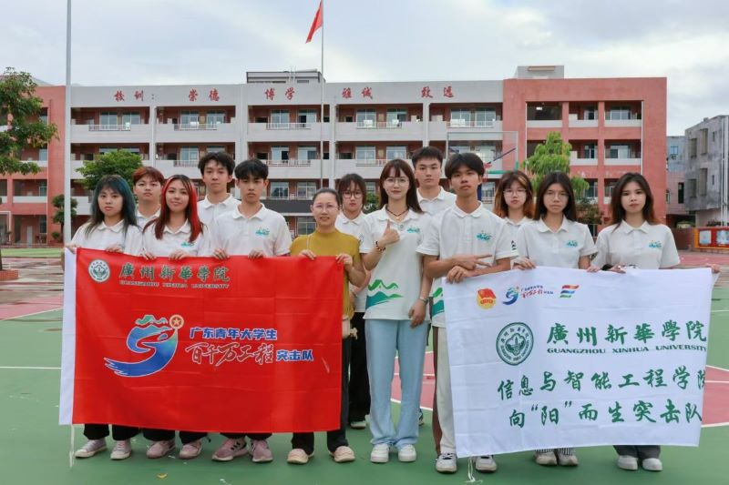 圖為實踐隊隊員與儒洞鎮中心小學教師操場合影 實踐隊隊員張金普攝