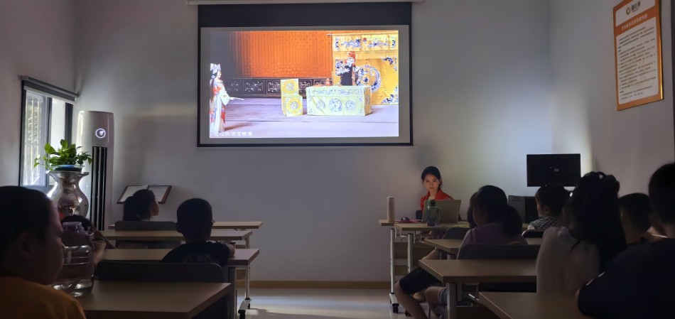 課程伊始,實踐隊通過播放一段京劇的精彩集錦,激發小朋友們對京劇的興趣。接著,實踐隊成員從京劇的起源講起,介紹了京劇的發展歷程——從“四大徽班進京”到徽秦合流、徽漢合流,從京劇的雛形形成到各大流派的紛呈繁榮。通過歷史紀錄片的展示,小朋友們被京劇深厚的歷史底蘊所吸引,津津有味地觀看著。