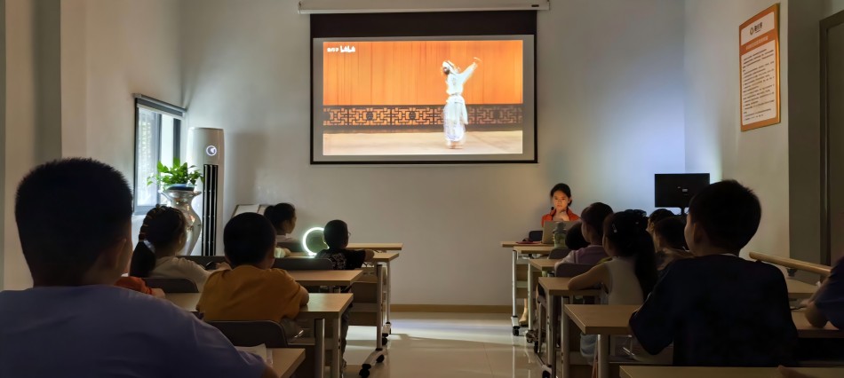 圖為小朋友們觀看京劇經典片段(實踐隊供圖)