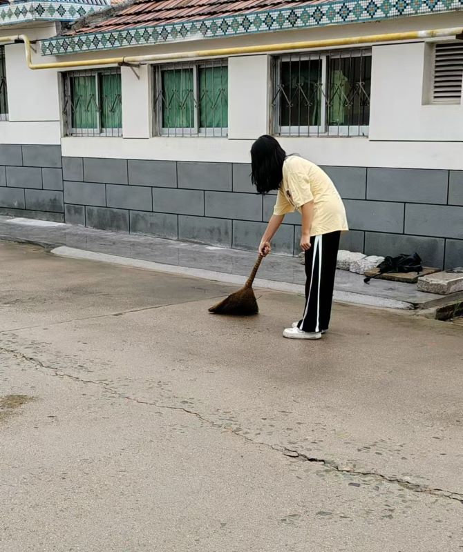 圖為進行環保宣傳時打掃大街。趙穎 供圖