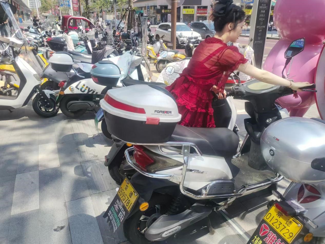 (圖為搬運(yùn)盲道上的電動(dòng)車,袁已婼同學(xué)拍攝)