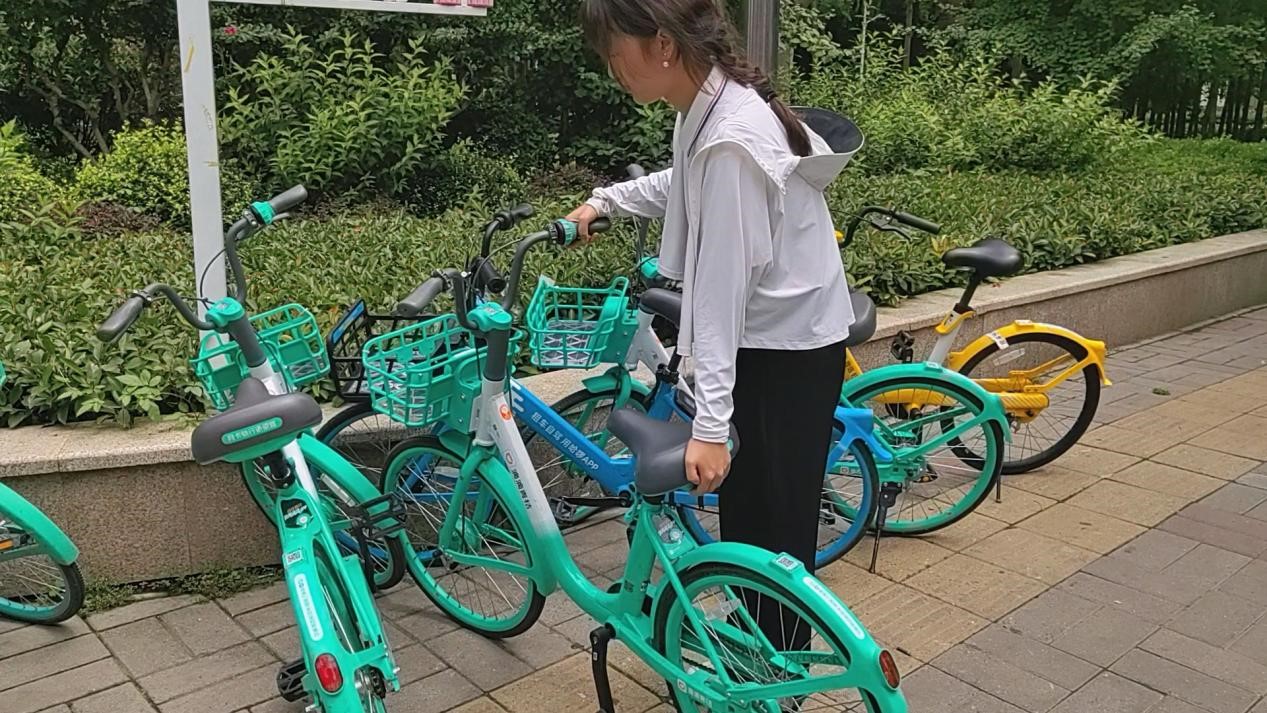 (圖為搬運(yùn)盲道上的共享自行車,郭佳瑞同學(xué)拍攝)