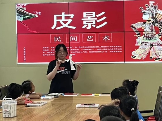 在調(diào)研團(tuán)成員的精心講解下,皮影戲的神秘面紗在大家面前慢慢揭開。孩子們?cè)谏拾邤痰钠び皠≈校瑢W(xué)習(xí)了如何將皮影人物巧妙地連接,體驗(yàn)了光影變幻的奇妙世界。無(wú)論是調(diào)皮的猴子還是英勇的將軍,孩子們都用自己的雙手賦予了這些傳統(tǒng)角色新的生命。
