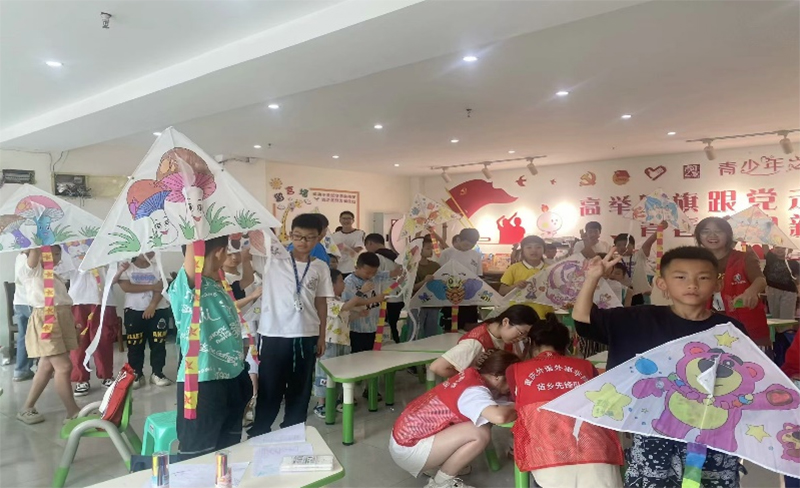 重慶外語外事學院苗鄉先鋒隊志愿者作為新時代青年,生長在紅旗下,沐浴在春風中,苗鄉先鋒隊志愿者為孩子們準備了一系列紅色精神故事。這些故事包括革命先烈的英勇事跡、抗日戰爭的艱苦歷程等。在“傳承紅色基因,共筑美好未來”故事分享會中,志愿者將革命先輩事跡一一講述,同時,還準備了相關的圖片和視頻資料,以便更好地幫助孩子們理解故事背景和人物形象。此外,苗鄉先鋒隊志愿者還設置了互動環節,讓孩子們提出問題、發表感想,以便更好地引導孩子們思考和感悟。帶領孩子們感悟先輩們的英勇無畏和堅定信念,傳承紅色精神的火種。七月盛夏,萬物熱烈。我校志愿者以“放飛夢想,傳遞溫暖”為主題開展創意DIY風箏活動,志愿者們先講解風箏歷史文化,展示精美圖片,激發孩子們向往。志愿者耐心教青少年兒童風箏的折法,隨后在上面繪畫上自己喜歡的圖片。小朋友們反復嘗試,最終設計出精美的風箏,在放風箏活動中,苗鄉先鋒隊志愿者組織了多個小組進行比賽和互動。在比賽過程中,孩子們互相幫助、互相鼓勵,共同享受著放風箏的樂趣。在運動公園操場上放飛風箏、放飛夢想,提升了小朋友們的團隊協作能力和創新精神。通過放風箏活動,孩子們不僅鍛煉了身體協調能力、觀察力和耐心等能力素質;還學會了團隊合作和互相幫助的精神;更重要的是他們體驗到了戶外活動的樂趣和大自然的魅力。此外;還增進了同學之間的友誼和感情;也讓苗鄉先鋒隊志愿者看到了他們在活動中的成長。