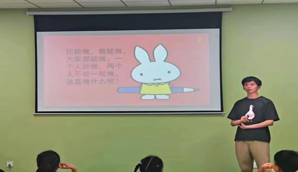 實踐團成員趙伯樂向小朋友們提問 趙伯樂 攝