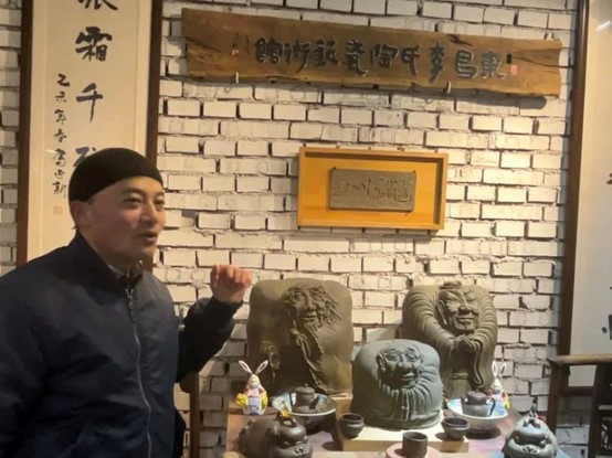 調(diào)研團(tuán)成員拜訪了李氏陶藝第六代傳承人李子輝先生。他不僅繼承了祖輩的陶藝制作技藝,還在堅(jiān)持歷史傳承的基礎(chǔ)上,不斷進(jìn)行深入推廣和創(chuàng)新。