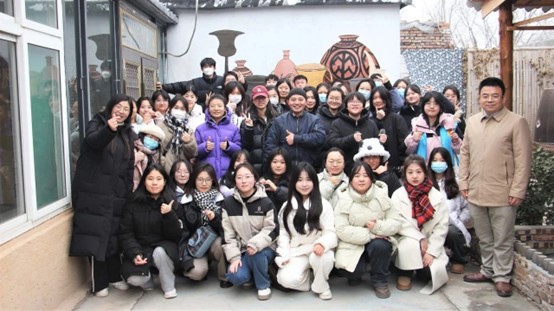 (圖為“尋遺筑夢(mèng)”社會(huì)實(shí)踐調(diào)研團(tuán)成員與東昌李氏陶藝傳承人及相關(guān)人員的合影)