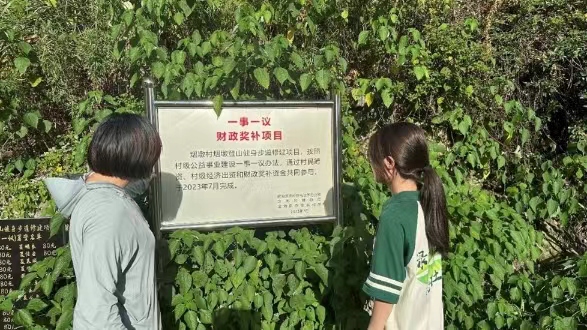 圖為團隊成員與煙墩村村干部交談該村鄉村振興的成果。戴若怡 供圖