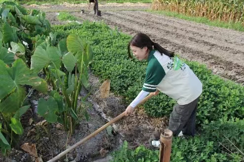 圖為團隊成員在田間幫助農戶。戴若怡 供圖