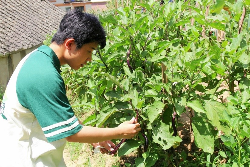 圖為團隊成員幫助農戶采摘茄子。戴若怡 供圖