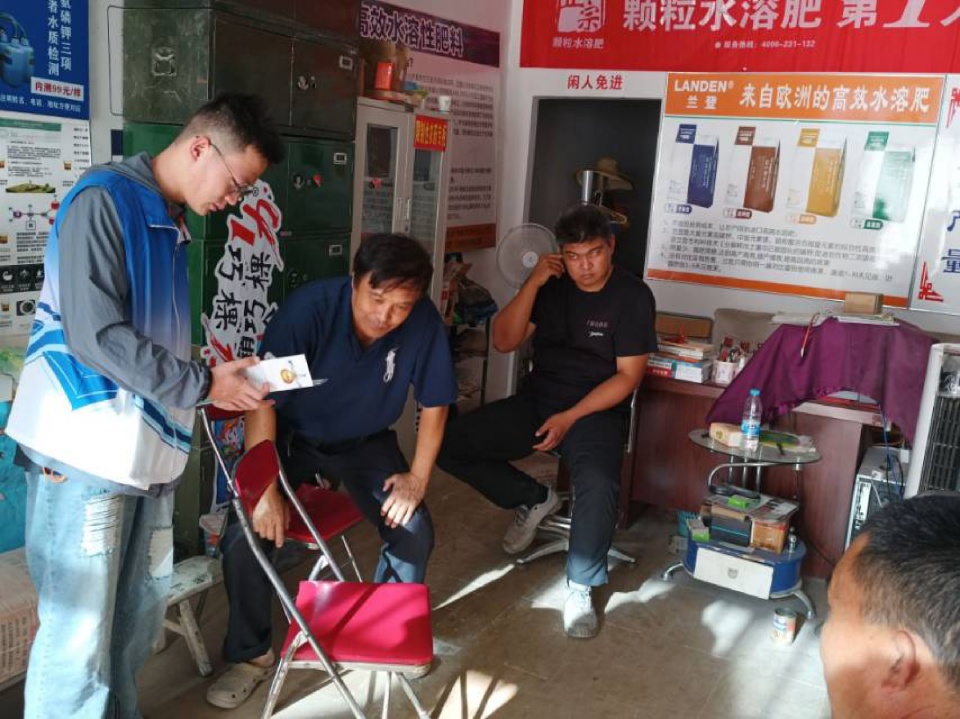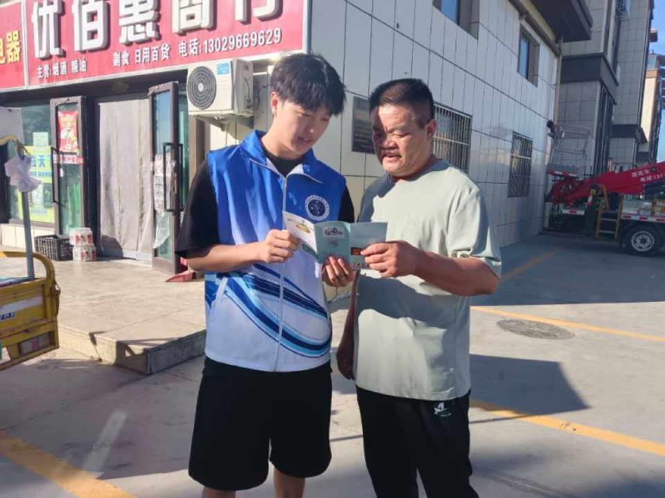圖為實(shí)踐隊(duì)員對(duì)十二團(tuán)商戶居民進(jìn)行反詐知識(shí)宣講的畫(huà)面。中國(guó)青年網(wǎng)通訊員 黃波 供圖