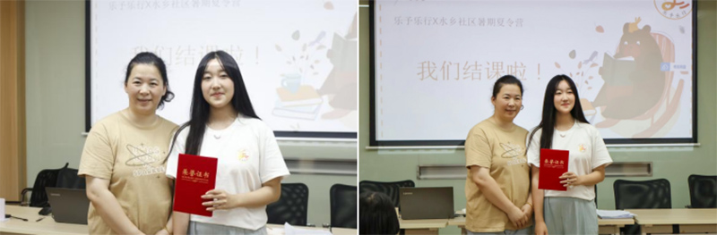 圖為社區(qū)負(fù)責(zé)人為蘇州大學(xué)“樂予樂行”實(shí)踐團(tuán)頒發(fā)榮譽(yù)證書 通訊員 沈鑫楊 供圖