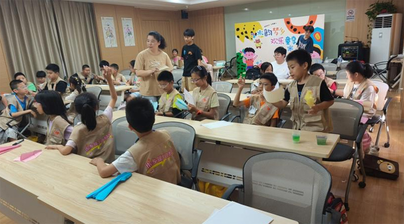 圖為小朋友們折紙飛機(jī) 通訊員 劉馨怡 供圖