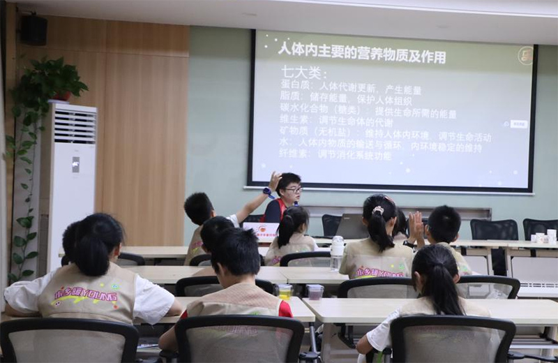 今天的第一堂課是由周明浩同學(xué)為小朋友們授課,他以扎實(shí)的專業(yè)背景和生動(dòng)的教學(xué)方式,引領(lǐng)小朋友們踏入科學(xué)營養(yǎng)的奇妙世界。周明浩同學(xué)從人體所需的基本營養(yǎng)素講起,深入淺出地解析了碳水化合物、蛋白質(zhì)、脂肪、維生素及礦物質(zhì)的作用與重要性。