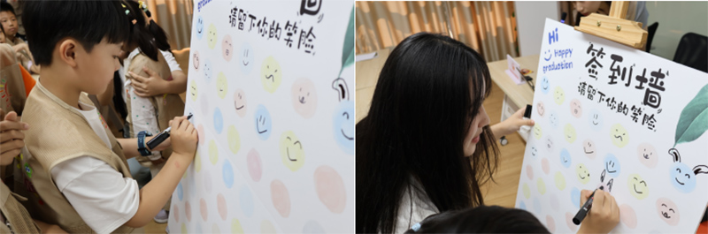 圖為小朋友們在簽名版上畫上笑臉 通訊員 沈鑫楊 供圖