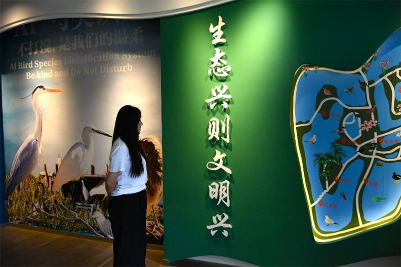 圖為團隊負責人劉馨怡參觀翠湖生態文明展廳學習知識。通訊員 劉子琦 攝