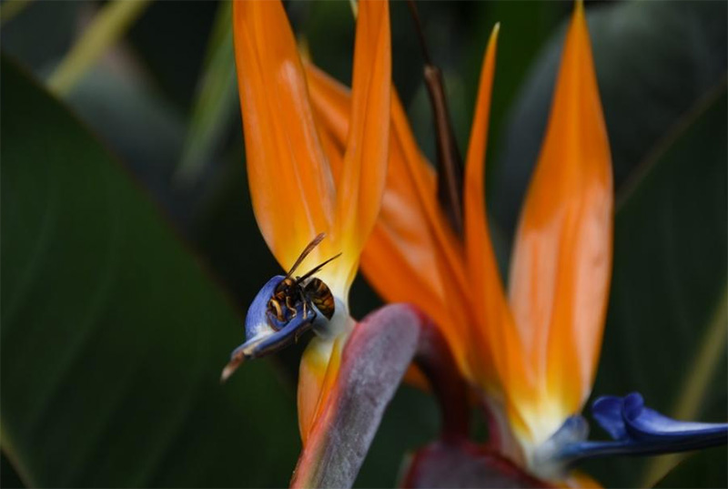 圖為團隊成員捕捉到的蜜蜂與天堂鳥。通訊員 劉子琦 攝