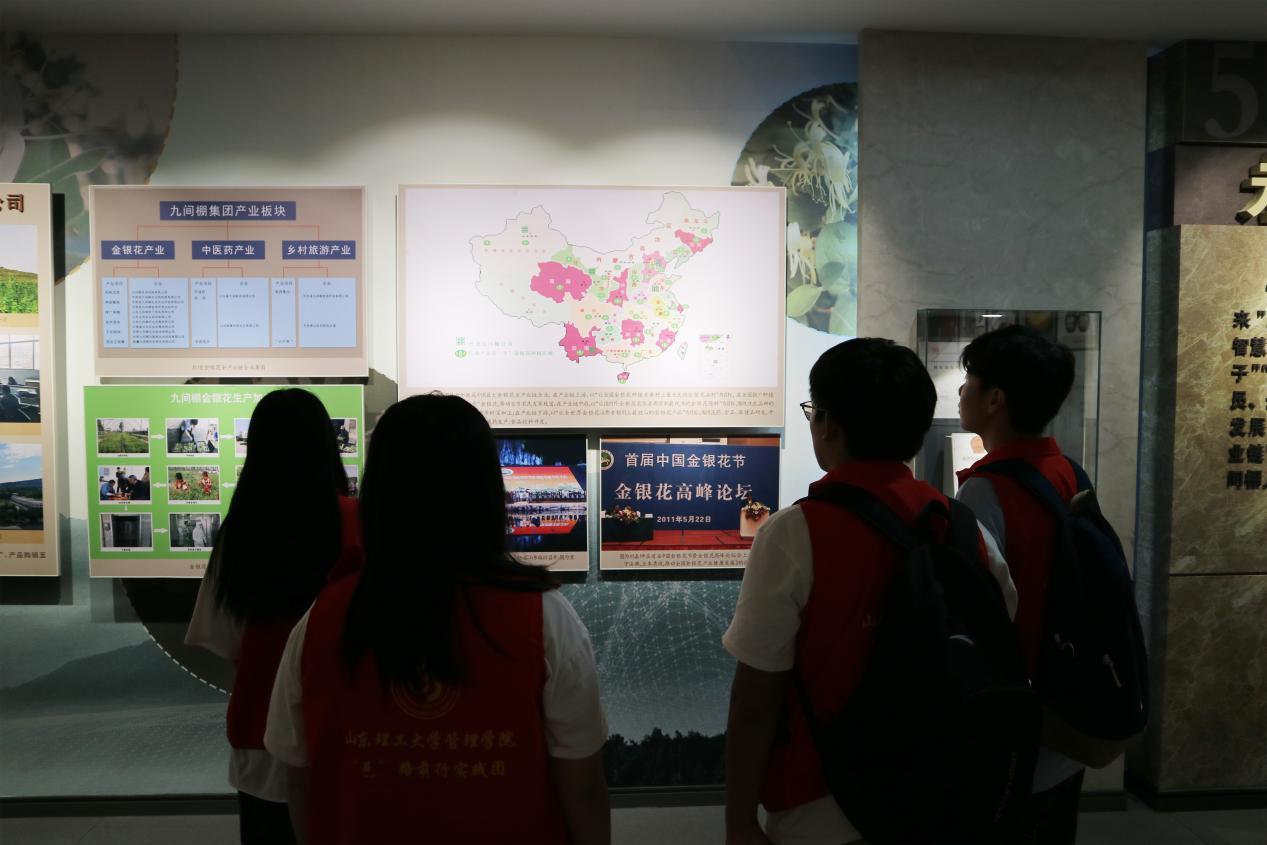 隨后,實踐團來到了金銀花博物館,金銀花博物館是山東中平藥業有限公司的亮點之一。參觀團成員在導游的帶領下,深入了解了金銀花的種植、采摘、加工和應用等方面的知識。博物館通過豐富的展品和生動的講解,將中醫藥文化與金銀花產業有機結合,展示了金銀花的歷史淵源、藥用價值以及產業發展的前景。