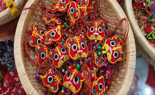 香包又稱“香囊”、“香纓”,俗稱“香布袋”,是我國傳統(tǒng)的民間藝術(shù)品,歷史久遠(yuǎn)。漢樂府長詩《孔雀東南飛》中“紅羅復(fù)斗帳,四角垂香囊”等詩句,印證了香囊的悠久歷史。徐州是兩漢文化的發(fā)祥地,徐州香包早在漢代就已出現(xiàn),經(jīng)過數(shù)千年的發(fā)展演變,逐漸形成了具有徐州地方特色的香包形式。徐州香包以新、奇、美、真為特色,形狀敦實淳樸,色彩對比強烈,立體造型栩栩如生,整體上生動、簡潔、粗獷、質(zhì)樸,局部刺繡恭謹(jǐn)細(xì)膩,相得益彰,形神兼?zhèn)洌┟钗┬ぁ6嘁韵矐c吉祥題材為主,如龍鳳呈祥、鴛鴦戲水、松鶴延年等,寄托著人們祈求祥瑞、辟邪納福、豐衣足食的美好愿望。從藥用價值上來看,徐州香包內(nèi)料由20多種中草藥配比研磨而成,有著驅(qū)蚊除蟲、抵抗病毒、預(yù)防感冒的作用。