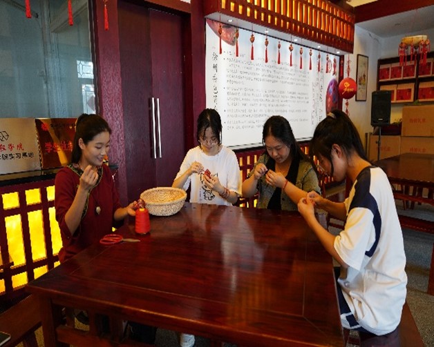 最后,傳承人孫歌堯向?qū)嵺`團講解了徐州香包制作流程,并帶領(lǐng)實踐團成員切身體驗徐州香包的縫制。從最初的中草藥配比、研磨成粉,到布料的刺繡、剪裁,再利用棉花填充其內(nèi)部進(jìn)行塑形,輔以一針一線縫合包邊,最后加上中國結(jié)、珠鏈、流蘇作為配飾,一個完整的香包就制作完成了。