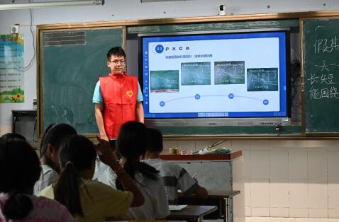 實(shí)踐團(tuán)還前往了山東省德州市臨邑縣孟寺鎮(zhèn),為當(dāng)?shù)貙?shí)驗(yàn)小學(xué)的學(xué)生開展生態(tài)保護(hù)與鄉(xiāng)村振興的相關(guān)科普。生態(tài)振興是鄉(xiāng)村振興的內(nèi)在要求,為幫助孩子們更深刻地理解“綠水青山與金山銀山相得益彰”的理念,小分隊(duì)成員在進(jìn)行講解的同時(shí),開展了趣味繪畫活動(dòng),通過水循環(huán)示意圖與環(huán)保創(chuàng)意宣傳海報(bào)的制作,讓孩子們更為直觀地認(rèn)識到科技、生態(tài)與鄉(xiāng)村振興的有機(jī)統(tǒng)一,學(xué)會(huì)了如何用科技的眼光看待自然,用生態(tài)的視角審視發(fā)展,用創(chuàng)新的思維參與鄉(xiāng)村振興。這不僅為他們個(gè)人的成長打下了堅(jiān)實(shí)的基礎(chǔ),也為鄉(xiāng)村振興注入了新的活力與希望。