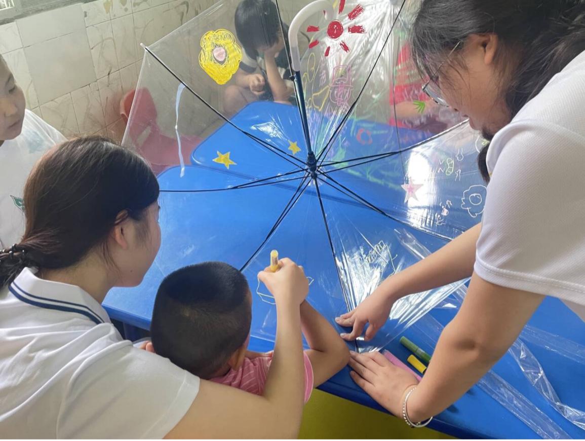 隨后,志愿者們與孩子們分組合作,在透明的雨傘上自由揮灑創意,用五彩斑斕的畫筆描繪出心中的夢想與希望。孩子們在志愿者的鼓勵下,勇敢地發揮想象力,每一把雨傘都成為了獨一無二的藝術品,展現了他們內心的多彩世界。