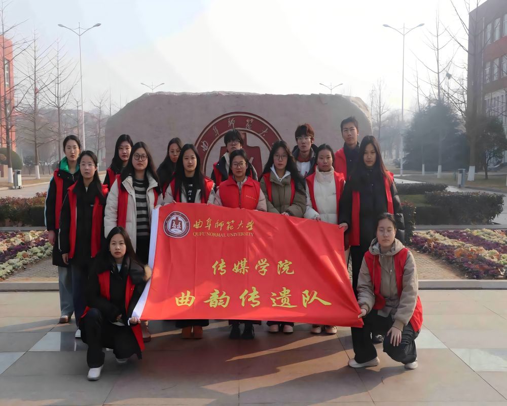 經過緊張的籌備與培訓,曲韻傳遺隊終于迎來了出發的時刻。2025年1月14日上午10時,隊伍在曲阜師范大學(日照校區)西門的;帐凹希臄z了實踐隊出發的照片。