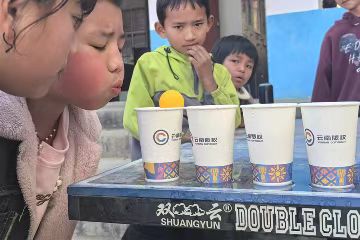 最后,支教隊員們帶領同學們開展了趣味運動,進行乒乓球過河游戲。孩子們分組進行挑戰,用嘴巴吹氣,使乒乓球順利“渡”過裝滿水的容器。通過這個趣味游戲,8們在輕松愉快的氛圍中鍛煉了能力,也加深了彼此之間的友誼。
