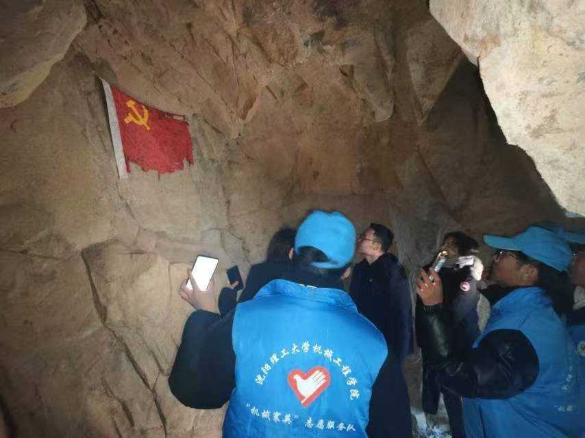 (圖為實踐團成員到達遼西第一黨支部誕生的山洞)