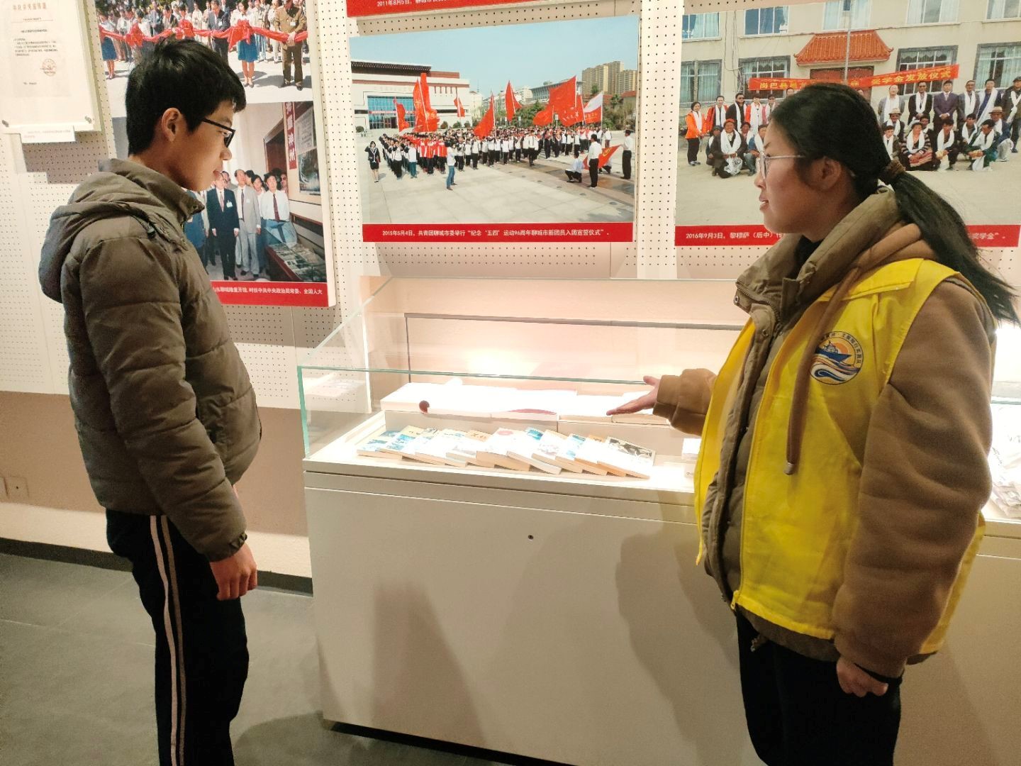 隊員們駐足在每一塊展板前,向游客們介紹了孔繁森同志生平事跡?追鄙谖鞑毓ぷ鲿r所穿的舊棉襖、密密麻麻記錄著藏區的民生狀況、發展規劃以及他對工作的思考與感悟的泛黃筆記本、寫給家人的家書……從他在艱苦的西藏地區兩次義無反顧地投身建設,到把自己的工資、獎金慷慨地分給藏族同胞,甚至在家庭面臨重重困難時,他依然選擇堅守崗位,為了藏區人民的幸福生活默默付出一切。
