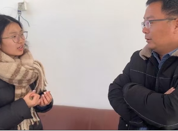 圖為實踐隊員在采訪村委會成員。 孫夢涵 供圖