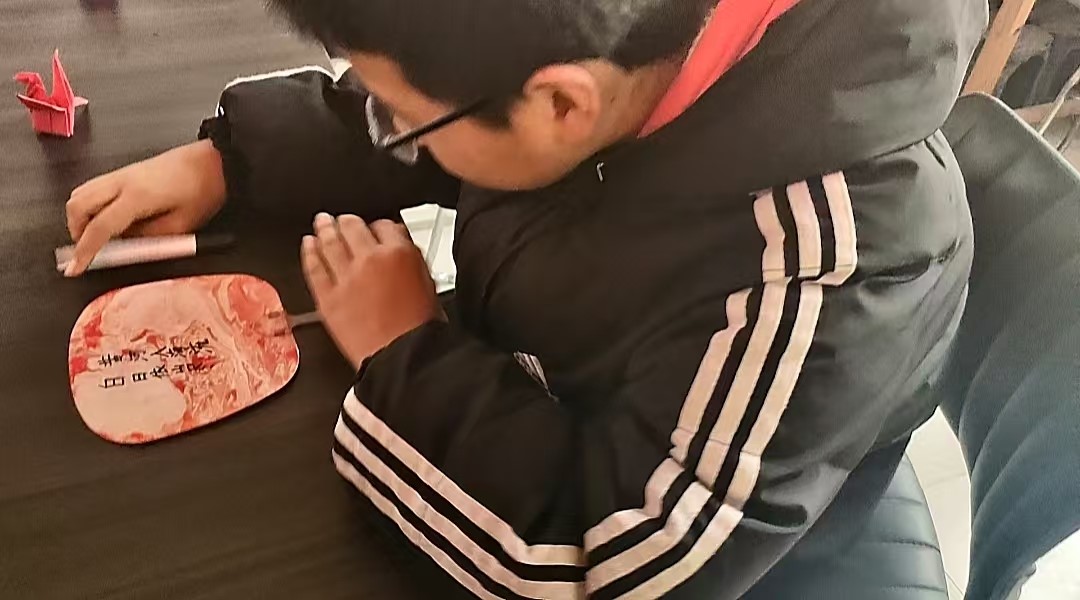 漆扇制作區域,在實踐隊員的鼓勵下,孩子們挑選喜愛的黃河詩句,認真書寫在漆扇上。“白日依山盡,黃河入海流”等經典詩詞,在孩子們筆下重現,一筆一劃都承載著黃河文化的韻味,也讓孩子們在書寫中體會到古詩詞的魅力。