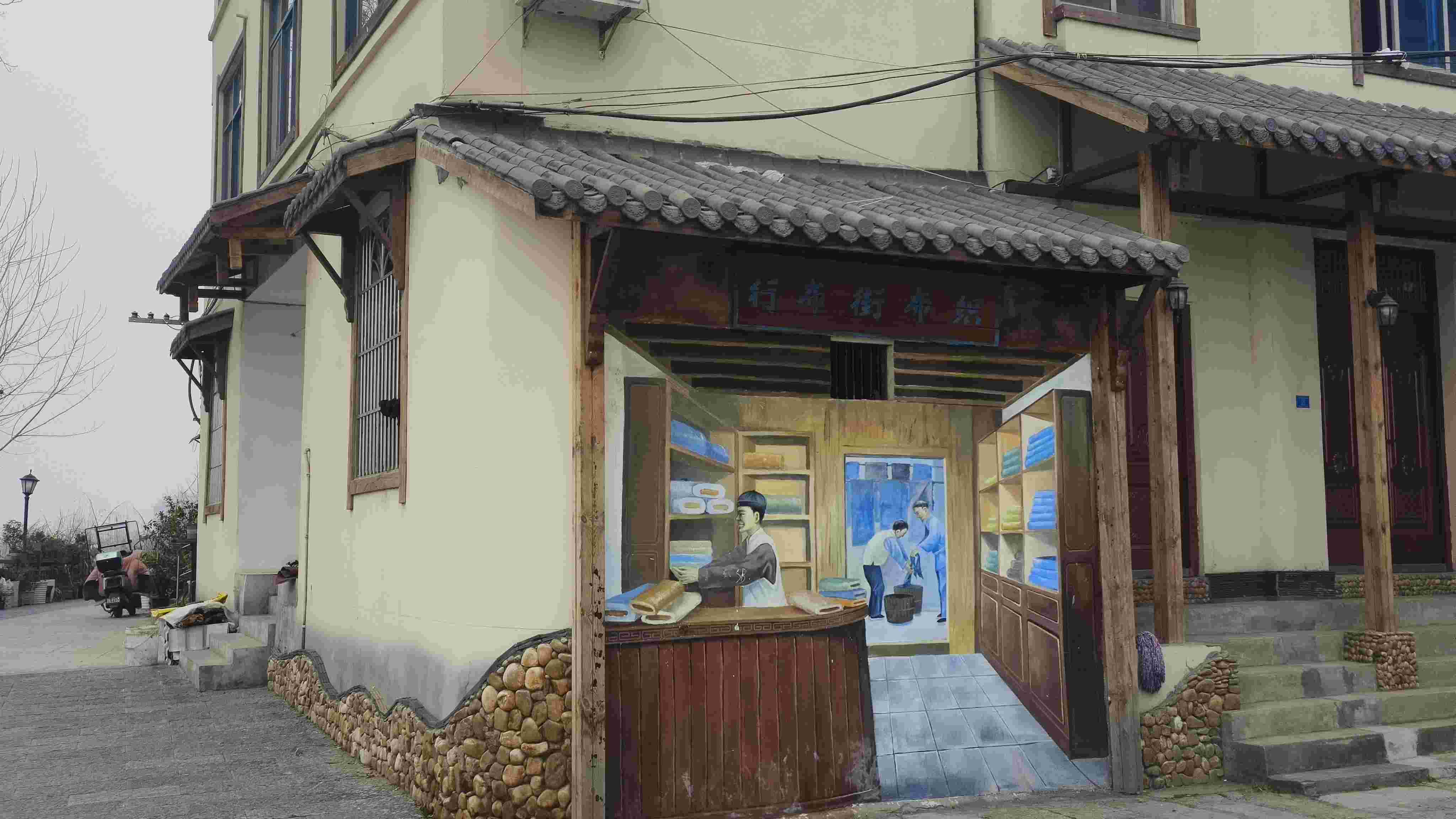圖為古村內藝術墻繪。馮宇佳 供圖