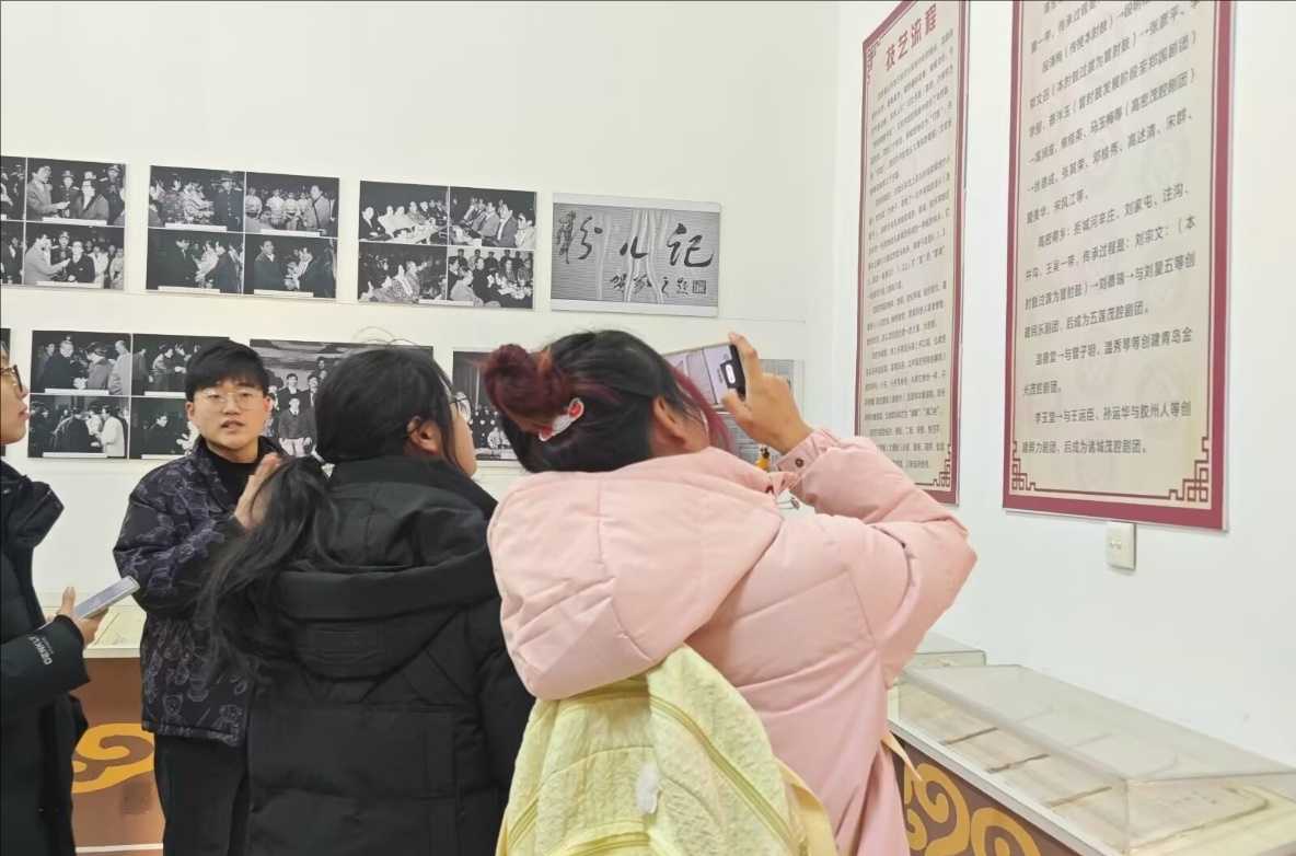 初抵濰坊高密,茂腔博物館如一座文化寶庫靜靜矗立,等待著實踐隊員們開啟探索之門。其古樸外觀散發(fā)著歷史的韻味,踏入其中,豐富多樣的展品令人目不暇接。精美的戲服繡工精湛,圖案精美絕倫,每一針每一線都訴說著往昔的故事;形態(tài)各異的道具,仿佛還留存著演員們在舞臺上的靈動氣息;泛黃的歷史照片與詳實的文字介紹,相互交織,勾勒出茂腔從萌芽到發(fā)展的漫長軌跡。隊員們穿梭于展品之間,目光中滿是好奇與敬畏,初步領(lǐng)略到茂腔起源于民間說唱,在歲月長河中不斷吸收融合周邊劇種藝術(shù)元素,與當(dāng)?shù)仫L(fēng)土人情緊密相連,逐漸形成獨特藝術(shù)風(fēng)格的歷程。