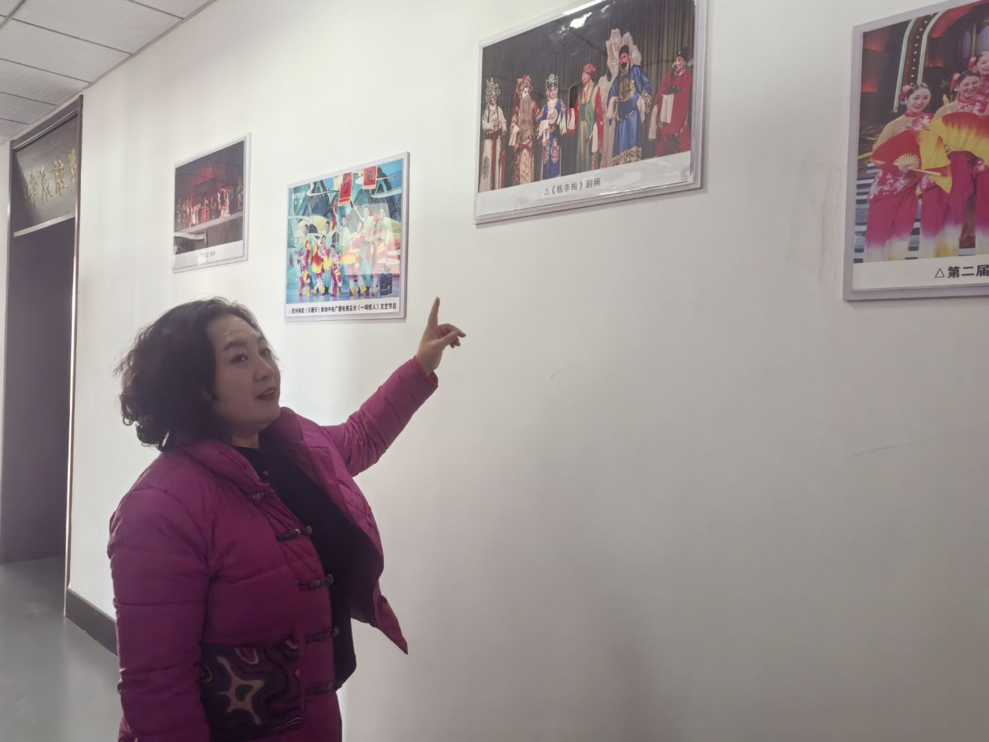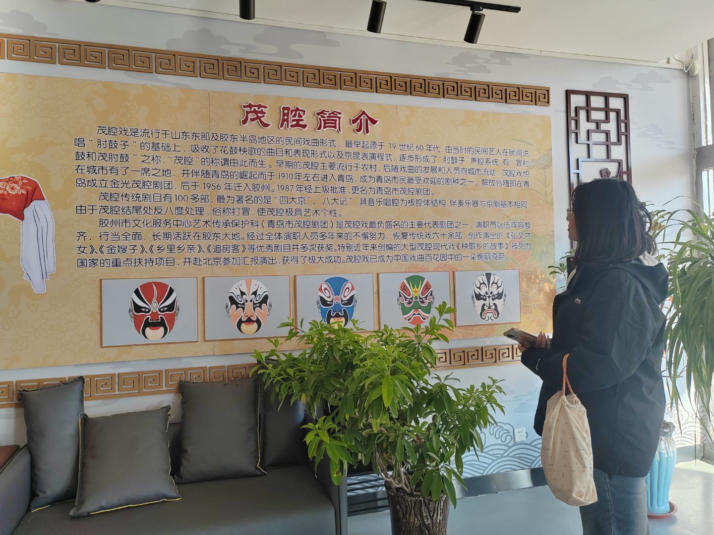 圖為實踐隊員通過劇團內部宣傳欄,了解茂腔歷史簡介和發展過程,。張昕 供圖