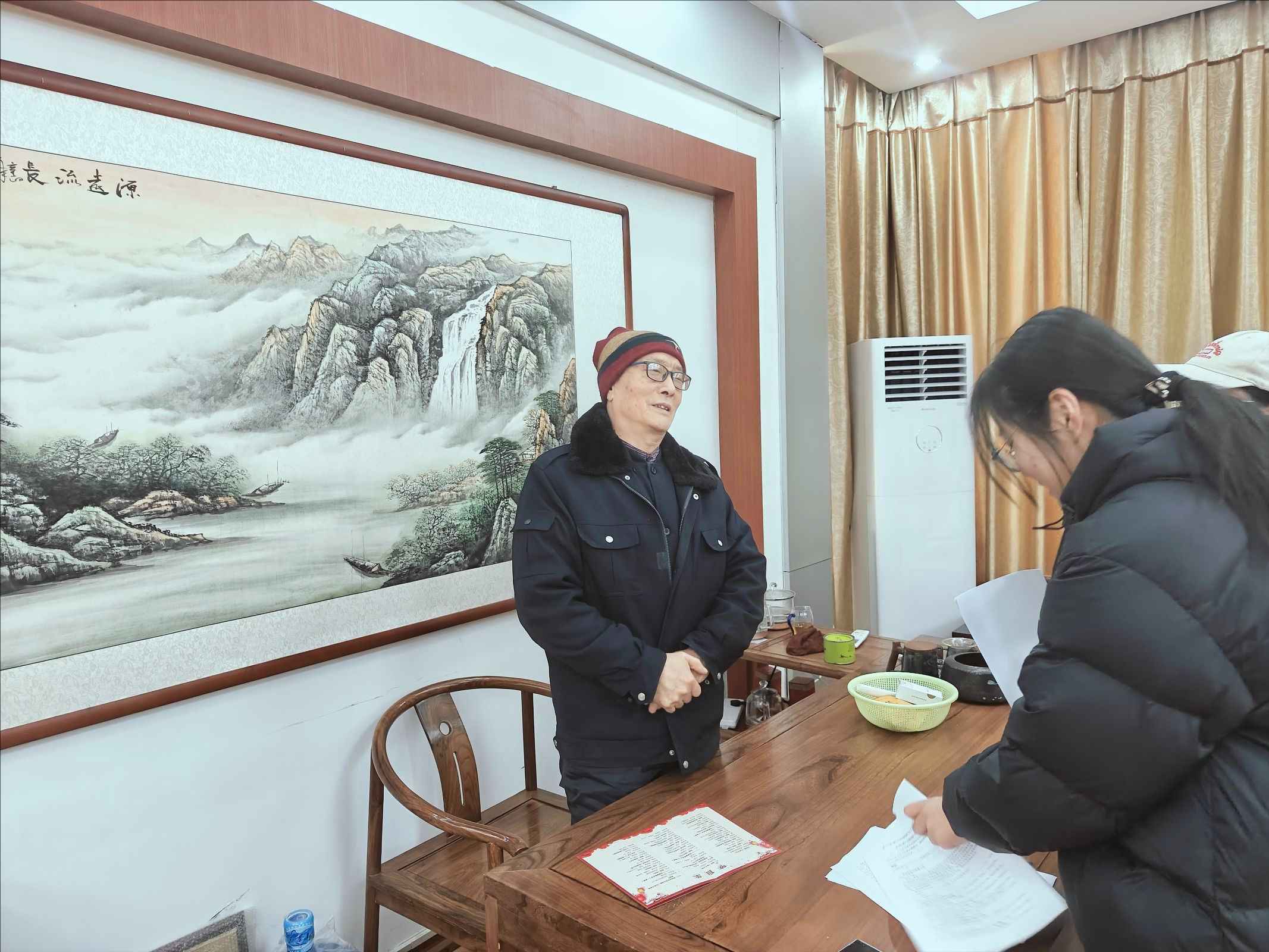 圖為社會實踐隊成員與劇團于老師探討茂腔的傳承困境。許田雨 供圖