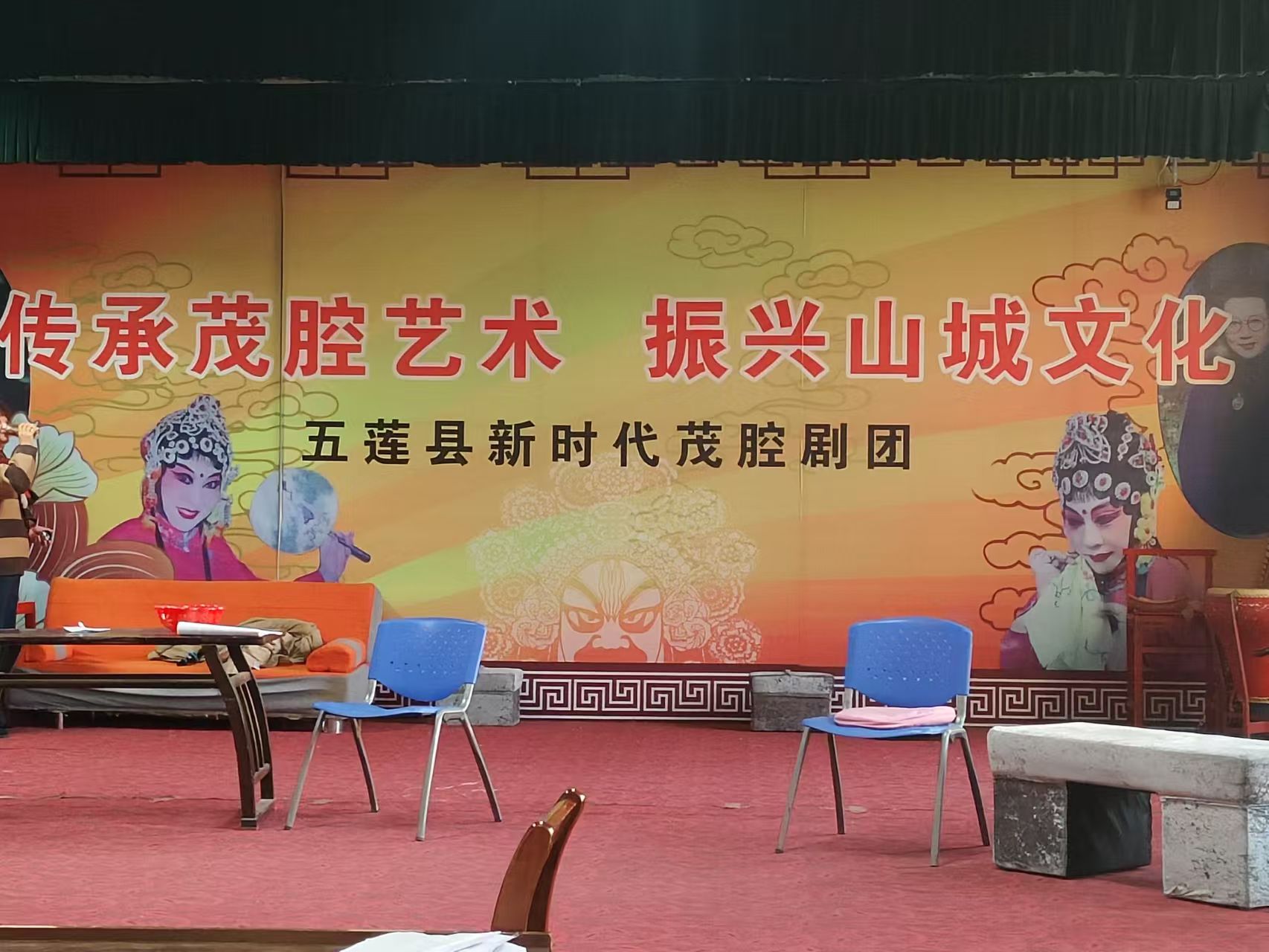 圖為社會實踐隊成員參觀五蓮縣新時代茂腔劇團排練。許田雨 供圖