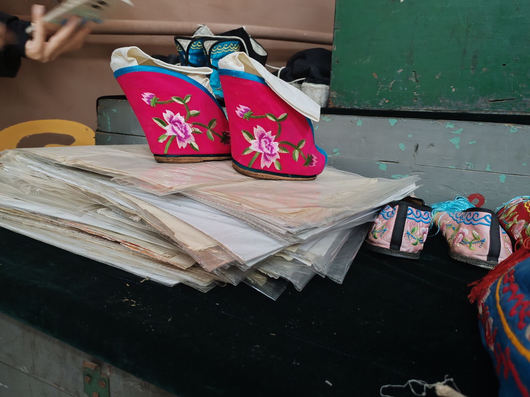 圖為《紅高粱》劇中九兒扮演者的演出鞋,演員老師經常穿這雙鞋跑全場,這雙鞋里面都是干涸的血跡,讓我們感受到了演員的不易。張薇 供圖