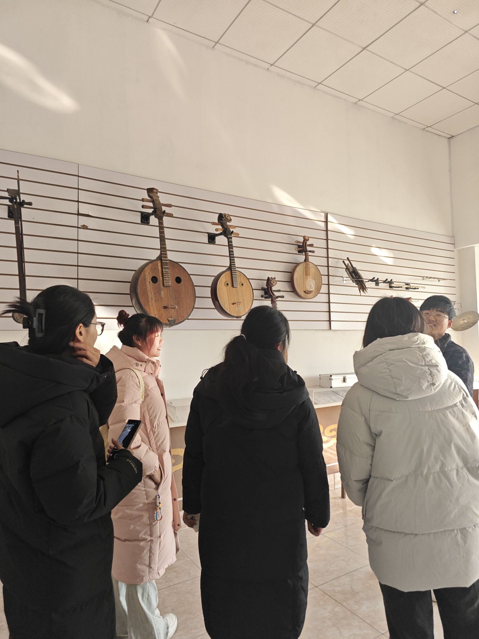 圖為高密大劇院工作人員為實踐隊員講解茂腔常用樂器,圖中有京胡,月琴,笙等樂器。吳俊瑤 供圖