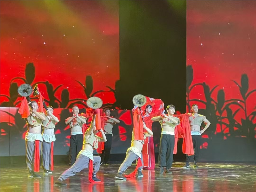 圖為高密市春節聯歡晚會,現代茂腔《紅高粱》中九兒出嫁的演出片段。舞臺上,演員們通過精湛的技藝和真摯的情感,向觀眾們呈現一場精彩絕倫的茂腔演出,收到觀眾們的熱烈掌聲。魏嘉慧 供圖