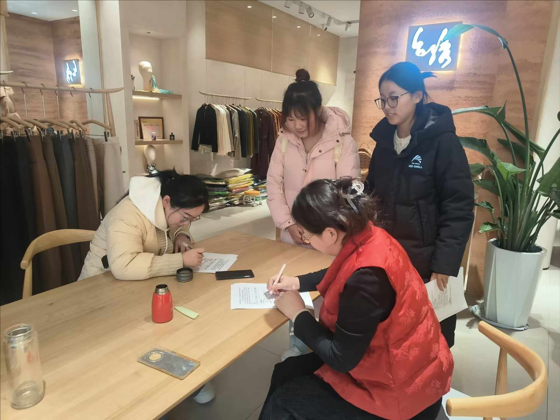圖為實踐隊員走進劇院周邊地區的一家服裝店,邀請兩位店員填寫調查問卷。閆麗萍 供圖