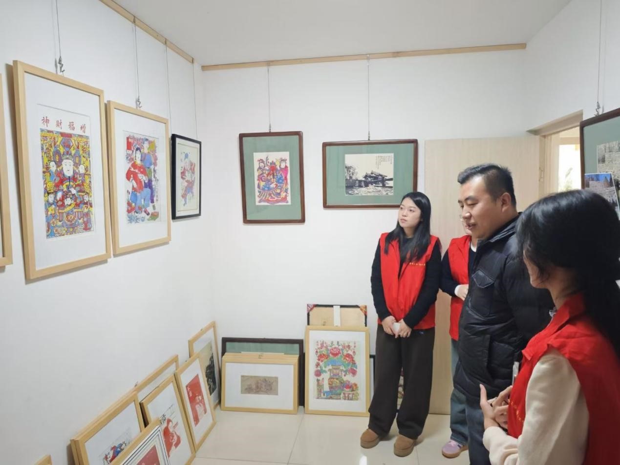 圖為實踐隊員參觀木板年畫展覽室。趙晨宇 供圖