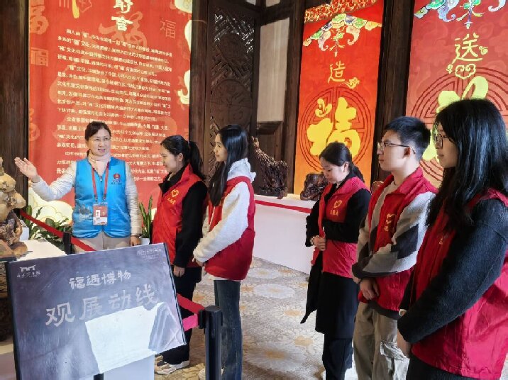 為深入了解游客對福文化和大健康理念的認知情況,實踐隊員在館內發放問卷。問卷內容豐富多樣,涵蓋了福文化的表現形式、傳承創新方式,以及對大健康理念的看法等。隊員們通過與游客的交流,分享福文化與大健康理念的內在聯系,如福文化中對平安、長壽的追求與現代健康生活方式的契合點,提升了游客對這兩者的理解。
