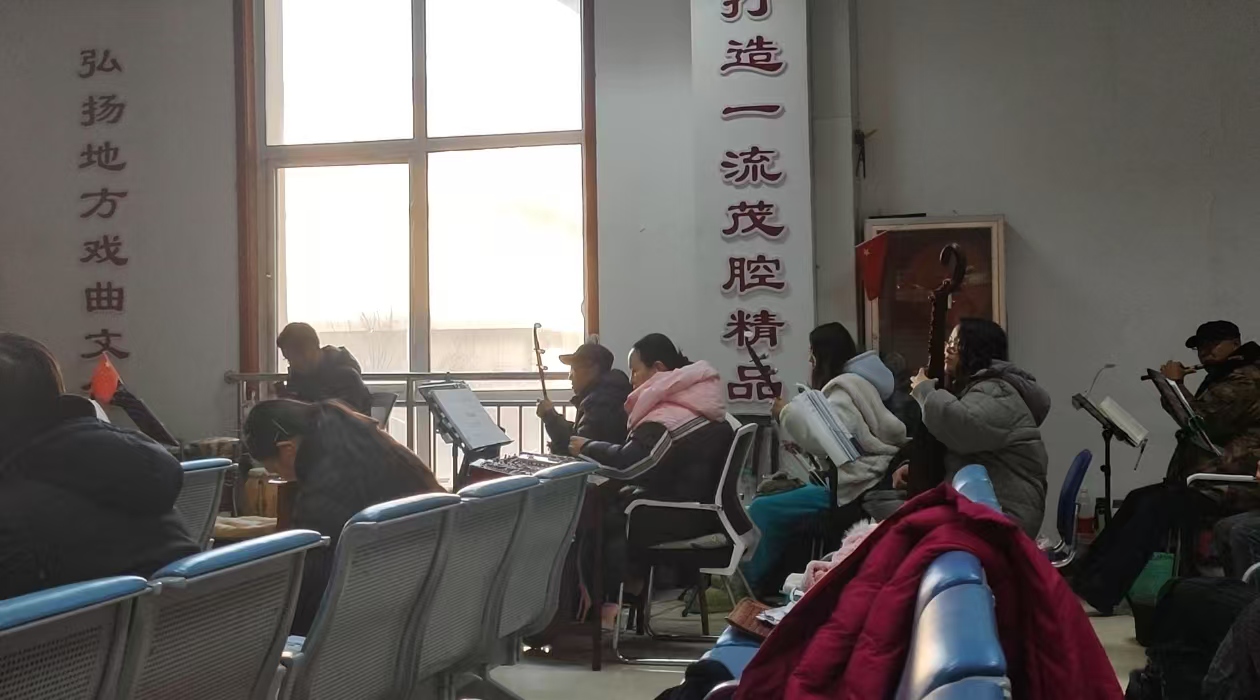 圖為茂腔劇團排練時劇團工作人員演奏的場景。許田雨 供圖